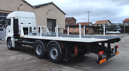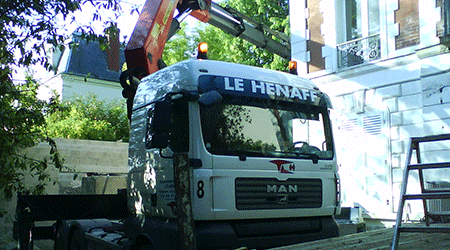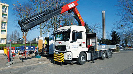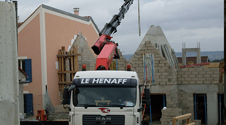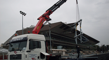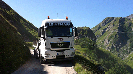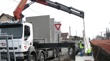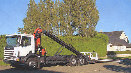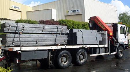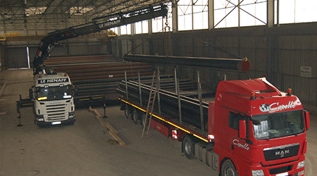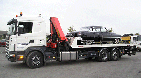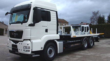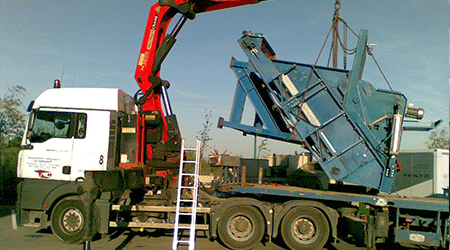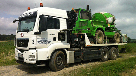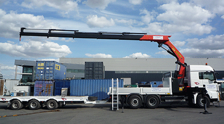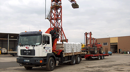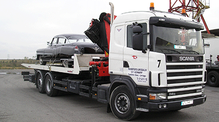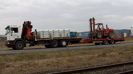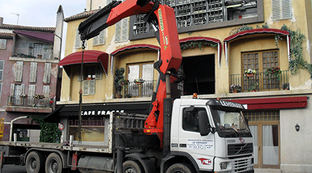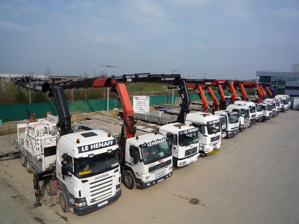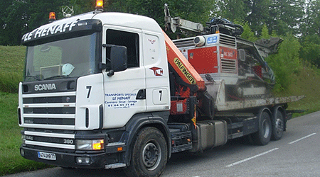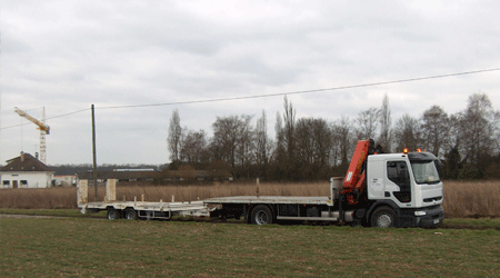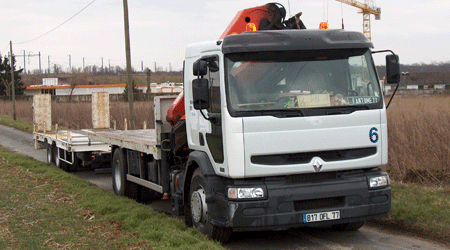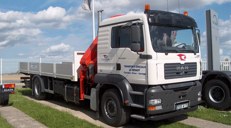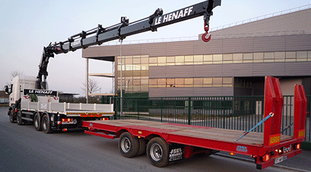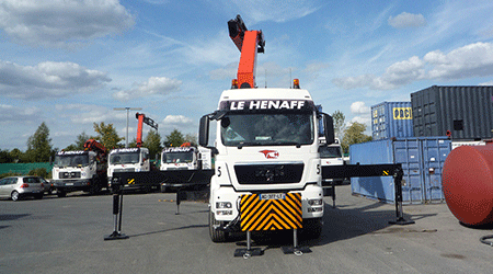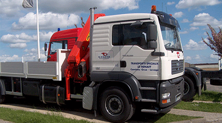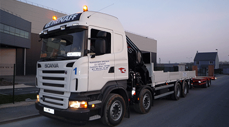Une flotte de camions remorque équipés de grues auxiliaires allant de 17 T/m à 80 T/m et pouvant effectuer en fonction des besoins, tous types de levage et de transport (bungalows, matériel de chantier, montage de hangars, cuves, machines outils, groupes électrogènes, piste de lavage, arbres, oeuvres d'art ...)