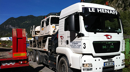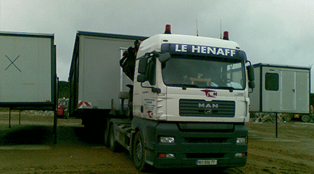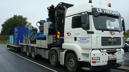 Nous avons toujours la solution adaptée à vos besoins qu'il s'agisse du transport de charges lourdes telles que les bungalows et du matériel de chantier, ou encore du montage de hangars. Nous mettons aussi à votre disposition un transport exceptionnel de machines de forages et autres, pour répondre à tous vos besoins. Une flotte de camions remorque équipés de grues auxiliaires allant de 17 T/m à 80 T/m et pouvant effectuer en fonction des besoins, tous types de levage et de transport (bungalows, matériel de chantier, montage de hangars, cuves, machines outils, groupes électrogènes, piste de lavage, arbres, oeuvres d'art ...) Tous nos véhicules sont régis sous l'article R433 (transport exceptionnel), et bénéficient d'arrêtés préfectoreaux sur tout le territoire.